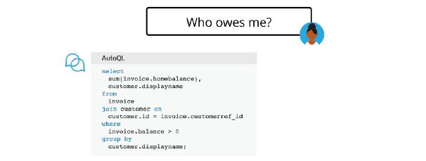 To return an accurate and contextually correct answer, the machine needs to understand how to connect all the variables of natural language with the limited, but still extensive, variables of database query language. When a user asks: “Who owes me?” the system understands what the sequence of words mean both in whole and in part, and dynamically generates a corresponding SQL statement based on that understanding. This means multiple unique SQL statements could be generated from natural language queries that vary only slightly in how they are asked by the user.